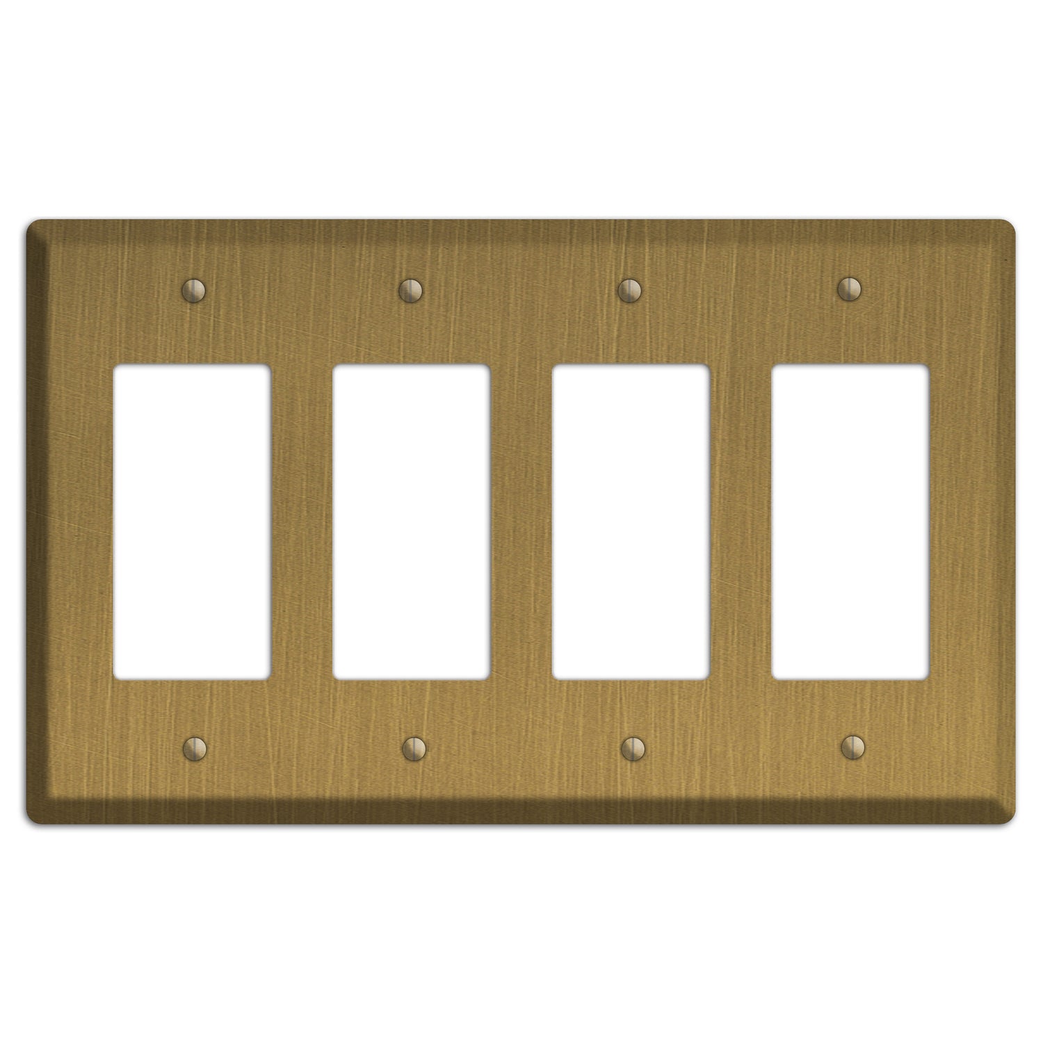 The Antique Brushed Solid Brass 4 Rocker Wallplate are very unique and cannot be found anywhere else. These USA made plates are made from solid brass with a hand brushed antique finish.