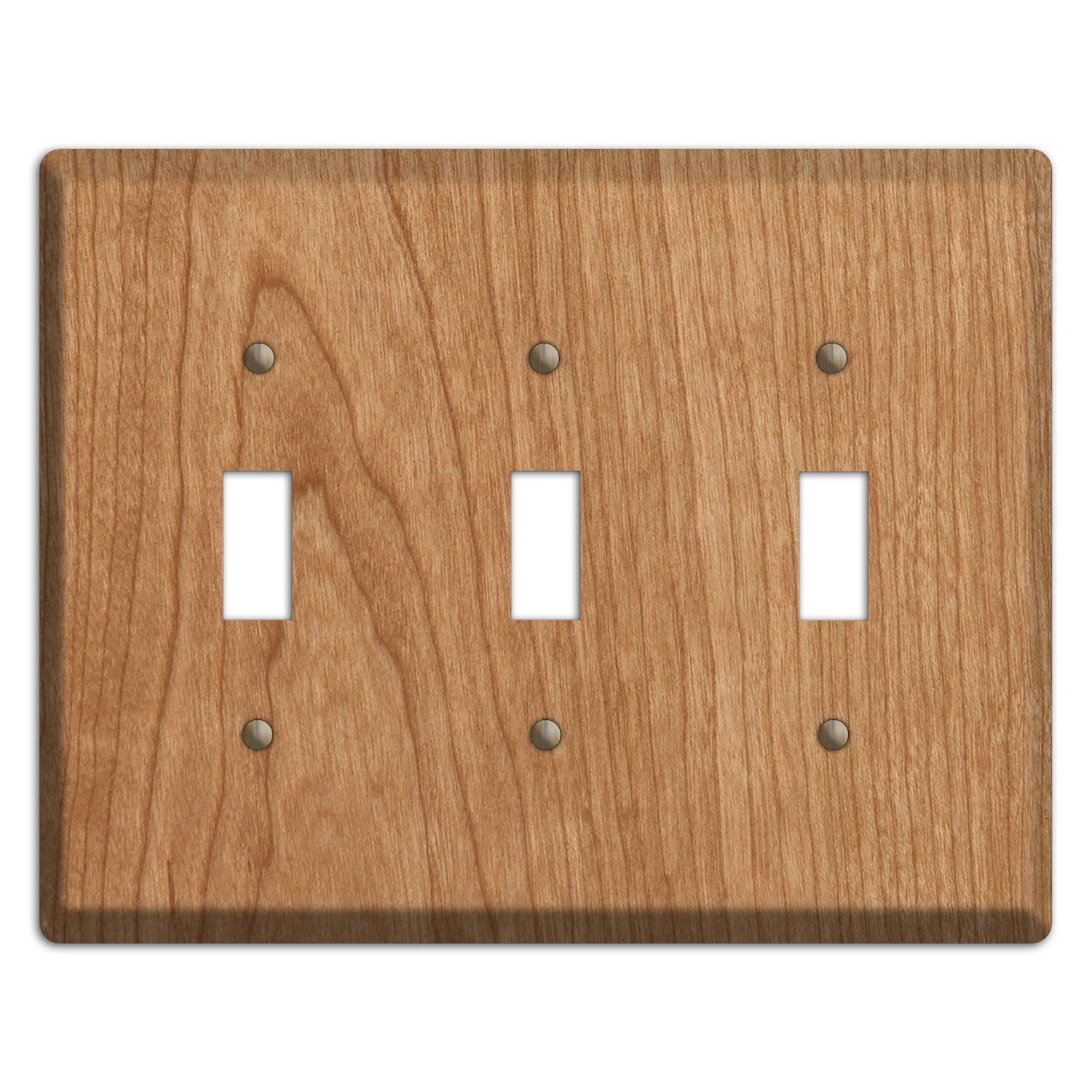 The Cherry Wood Triple Toggle Switchplate is a USA made wallplate using eco friendly Cherry Wood with a stainless steel backing. These plates have a hand rubbed oil finish to compliment the natural beauty of the wood.