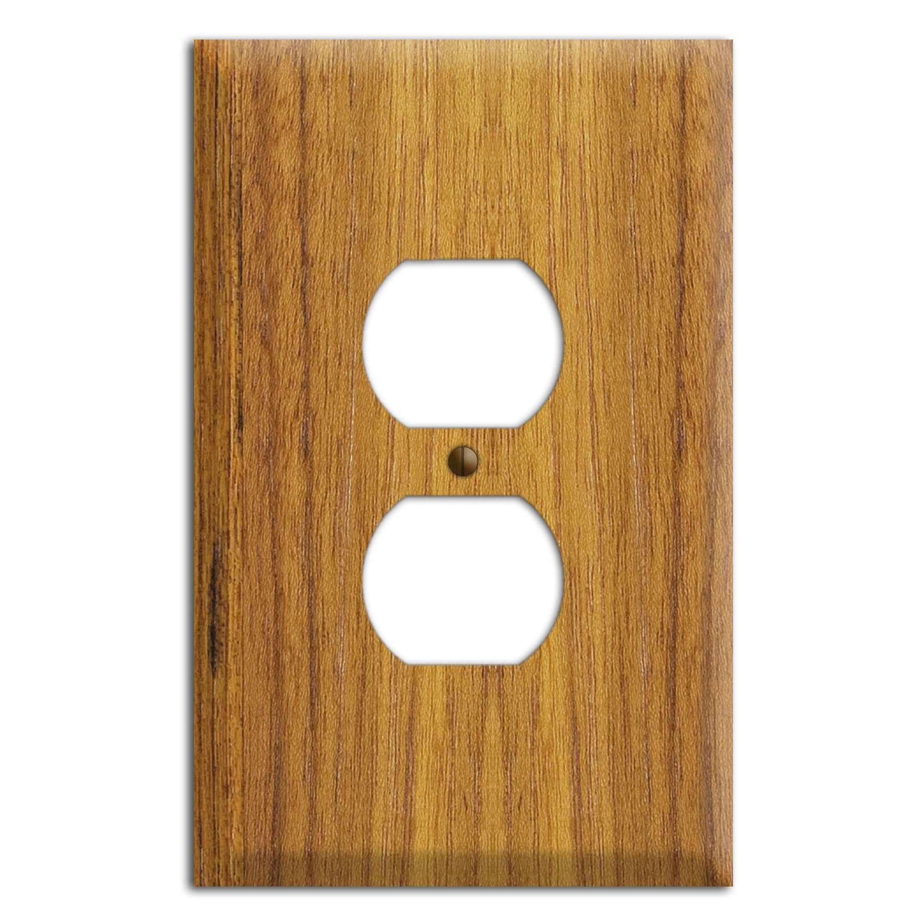 This item has been discontinued and is not returnable. It has been replaced with plates that can be found here: https://www.wallplates.com/collections/wood-wallplates The Teak Wood Duplex Outlet Cover Plate is a USA made wallplate using eco friendly Teak Wood with a stainless steel backing. These plates have a hand rubbed oil finish to compliment the natural beauty of the wood.