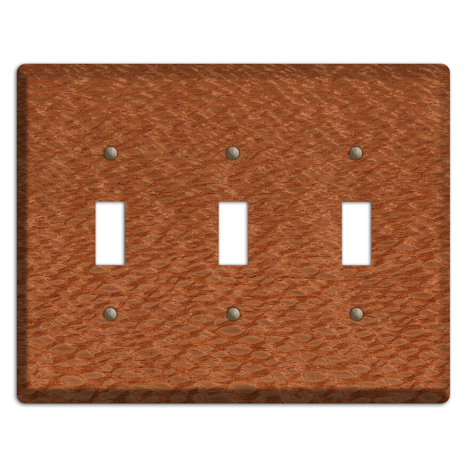 The Lacewood Wood Triple Toggle Switchplate is a USA made wallplate using eco friendly Lacewood Wood with a stainless steel backing. These plates have a hand rubbed oil finish to compliment the natural beauty of the wood.