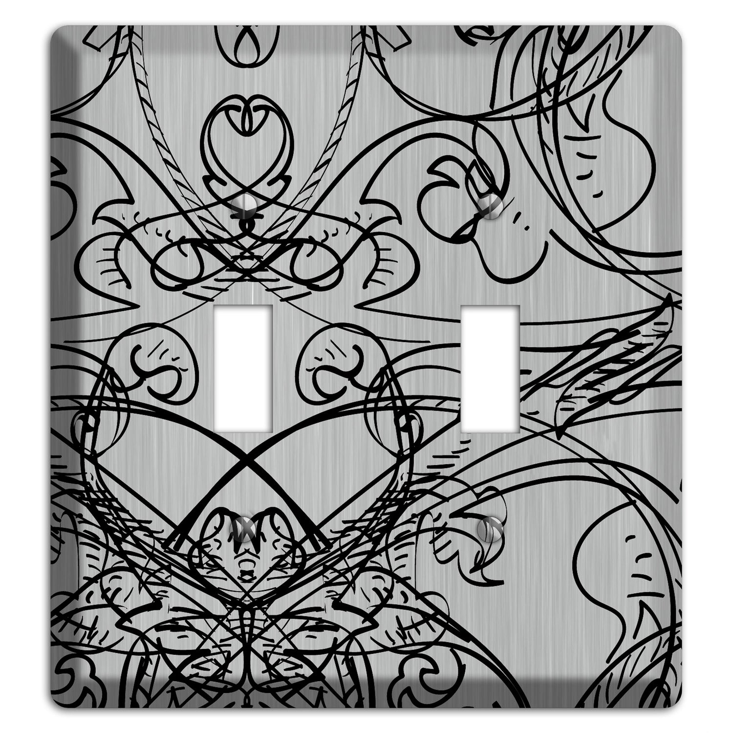 Black Deco Sketch Stainless Steel 2 Toggle Wallplate