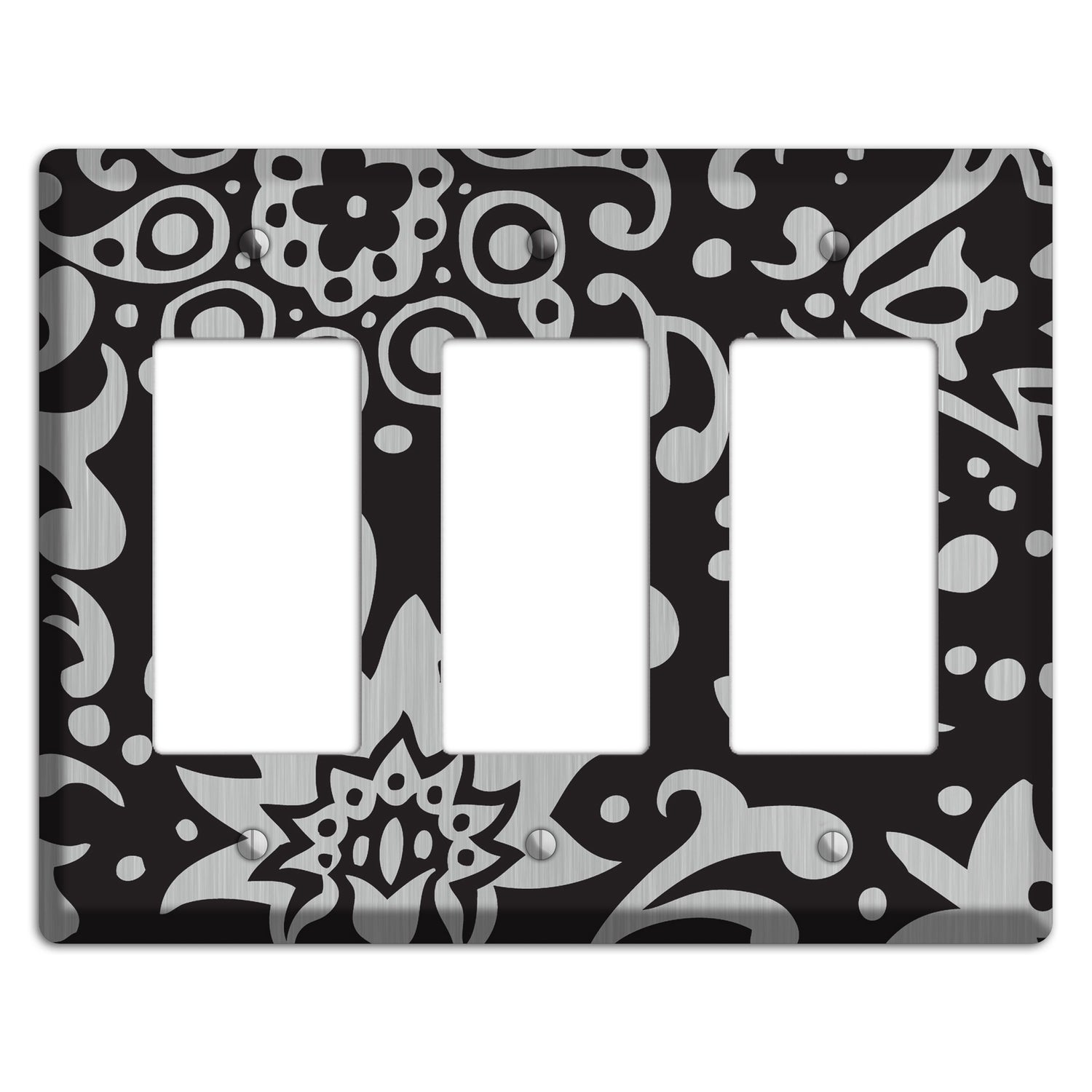 Black Boteh Stainless Steel 3 Rocker Wallplate