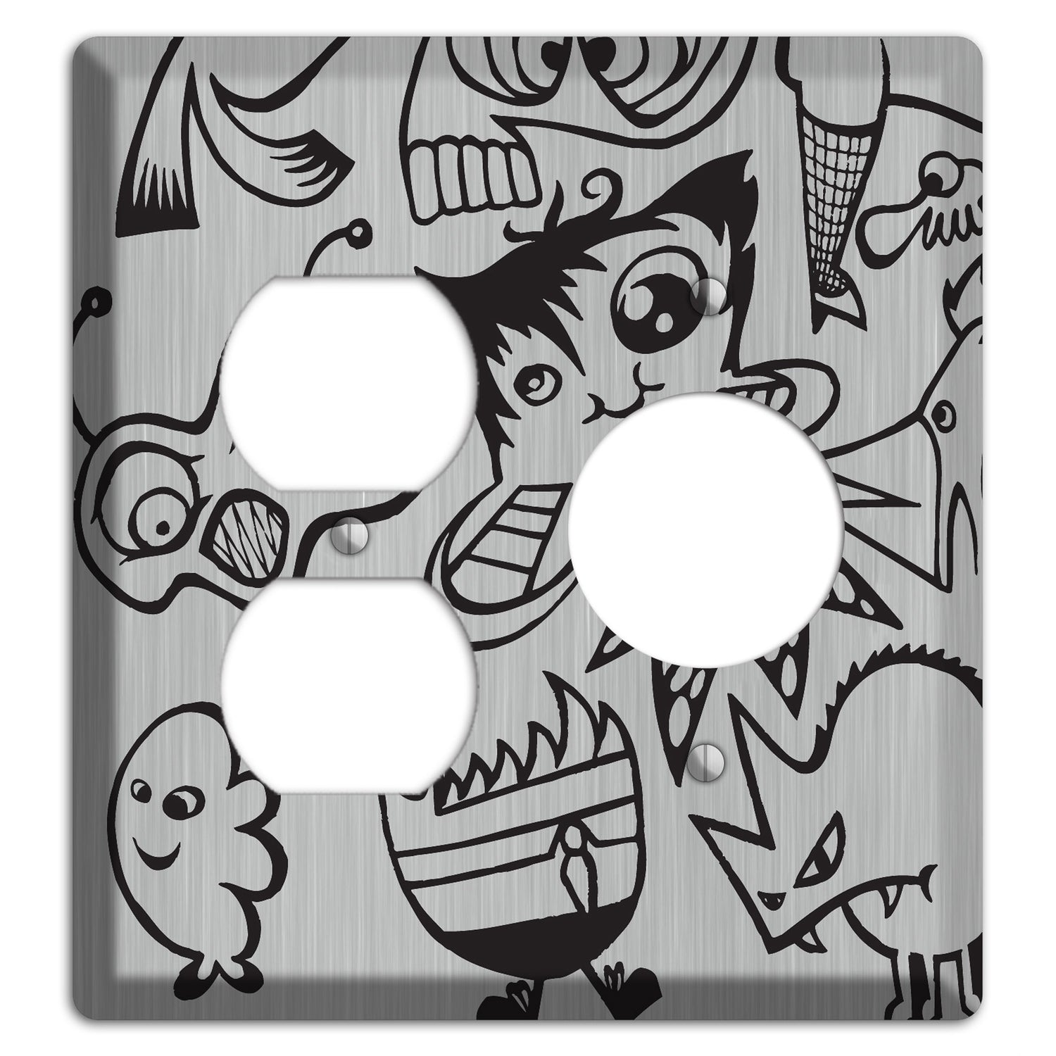 Whimsical Faces 3 Stainless Steel Duplex / Receptacle Wallplate