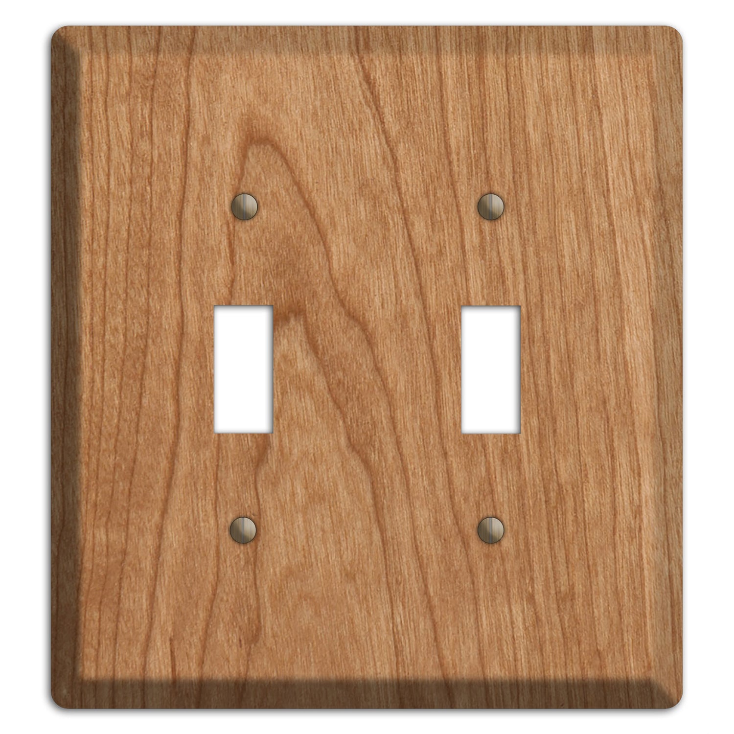 The Unfinished Cherry Wood Double Toggle Switchplate is a USA made wallplate using eco friendly Unfinished Cherry Wood with a stainless steel backing.