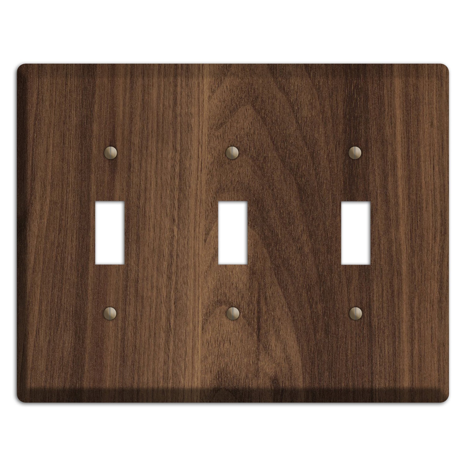 The Unfinished Walnut Wood Triple Toggle Switchplate is a USA made wallplate using eco friendly Unfinished Walnut Wood with a stainless steel backing.