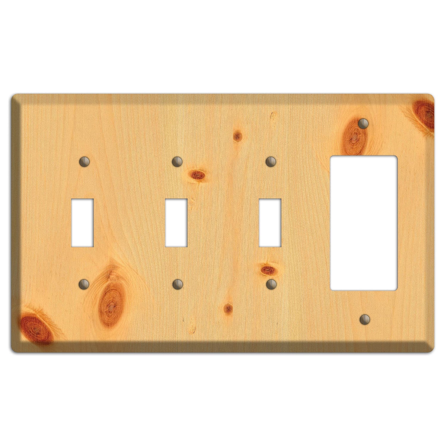 Unfinished Pine Wood 3 Toggle / Rocker Outlet Cover Plate
